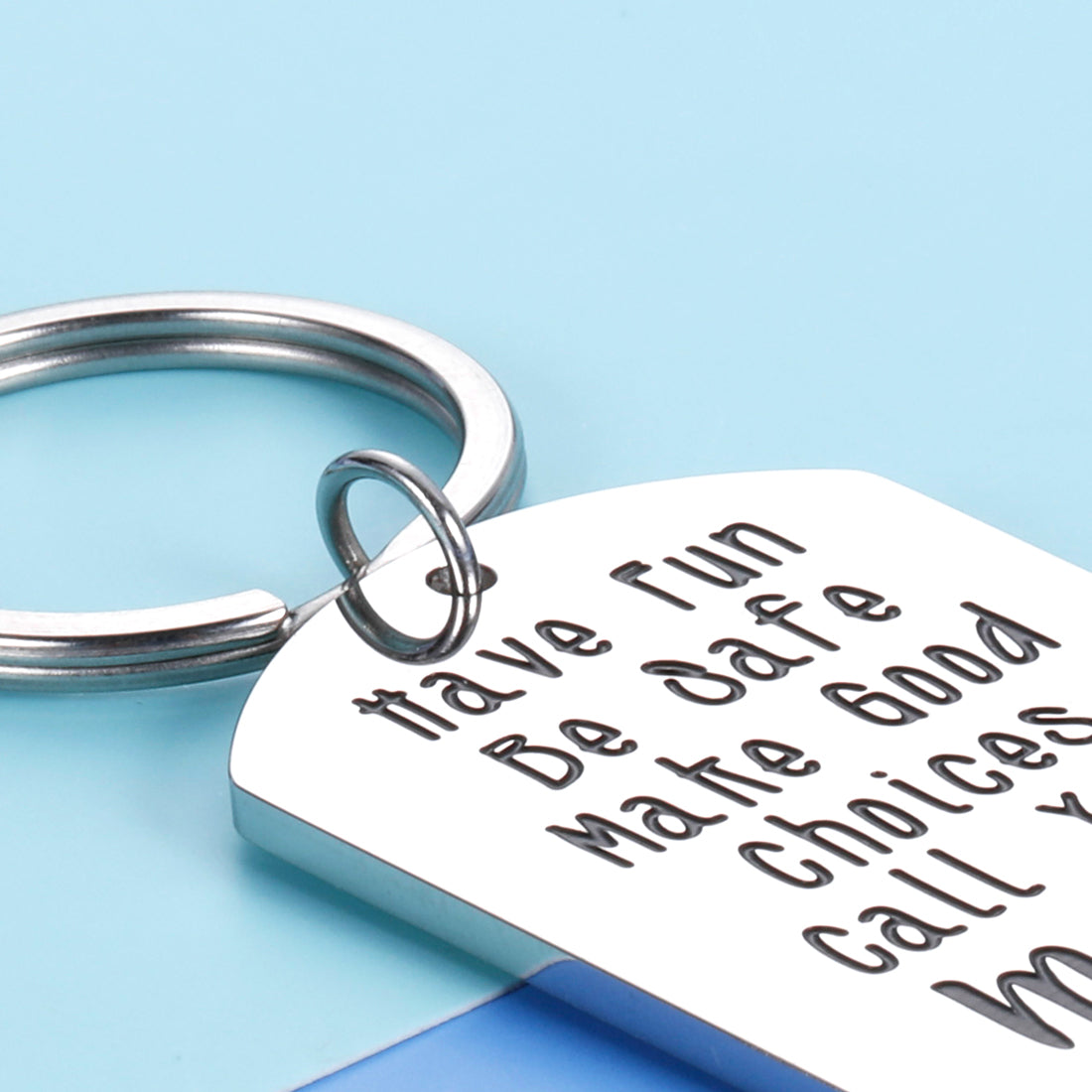 ❤ Have fun, be safe, make good choices, call your mom keychain