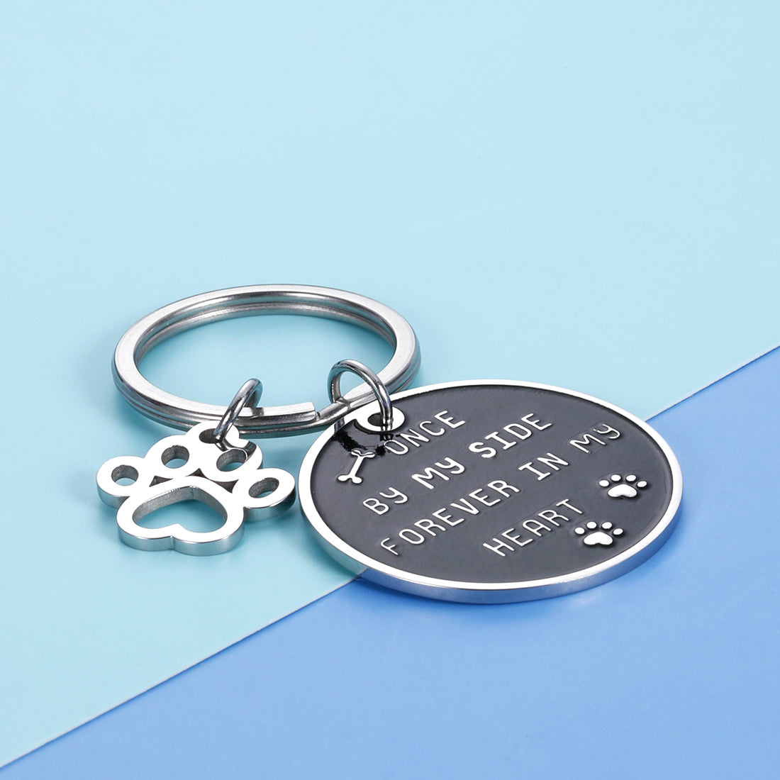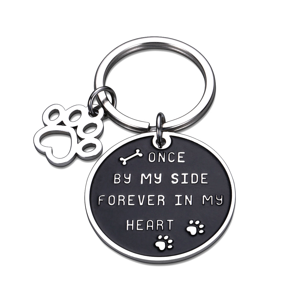 Pet Memorial Gift Keychain for Dogs Cats Remembrance Christmas Gif for Women Men Pet Lover Family Friends Once by My Side Forever in My Heart Keyring Pet Sympathy Gif for Boss Mom Wife Sister Kids