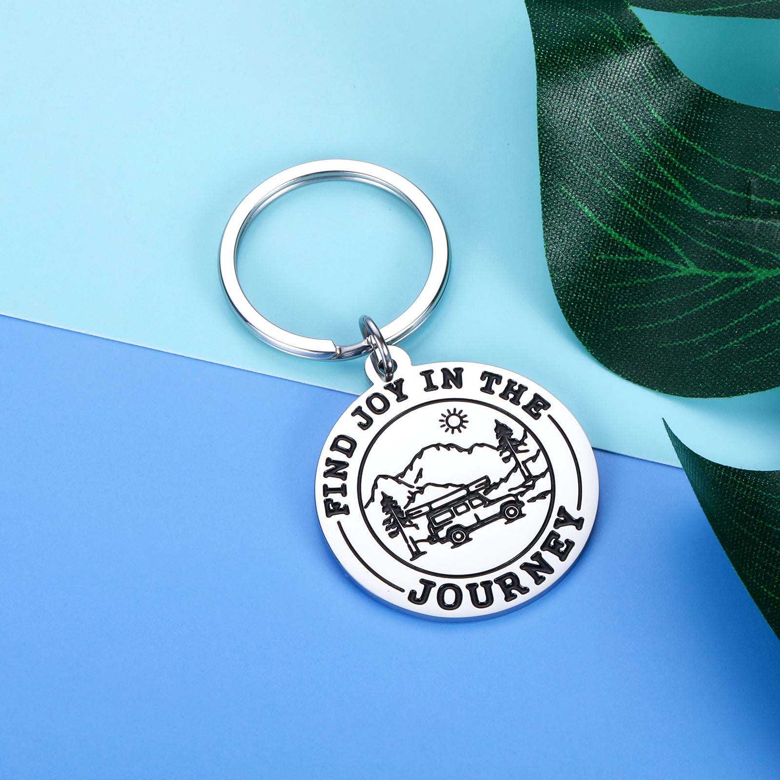 • ✿【GIFT FOR RV OUTDOOR ENTHUSIAST】--Fun travel accessory keychain gift for new RV owner, RV enthusiast, RV camper, in-laws who are going to be living the RV life, cycling tour, commemorating the first travel trailer purchase, long-distance travel, tour, family trip, day trip, road trip, self-driving tour, travel abroad, adventure, hiking, package tour. Let your joy be in your journey—not in some distant goal. Motorhome outdoor gifts.