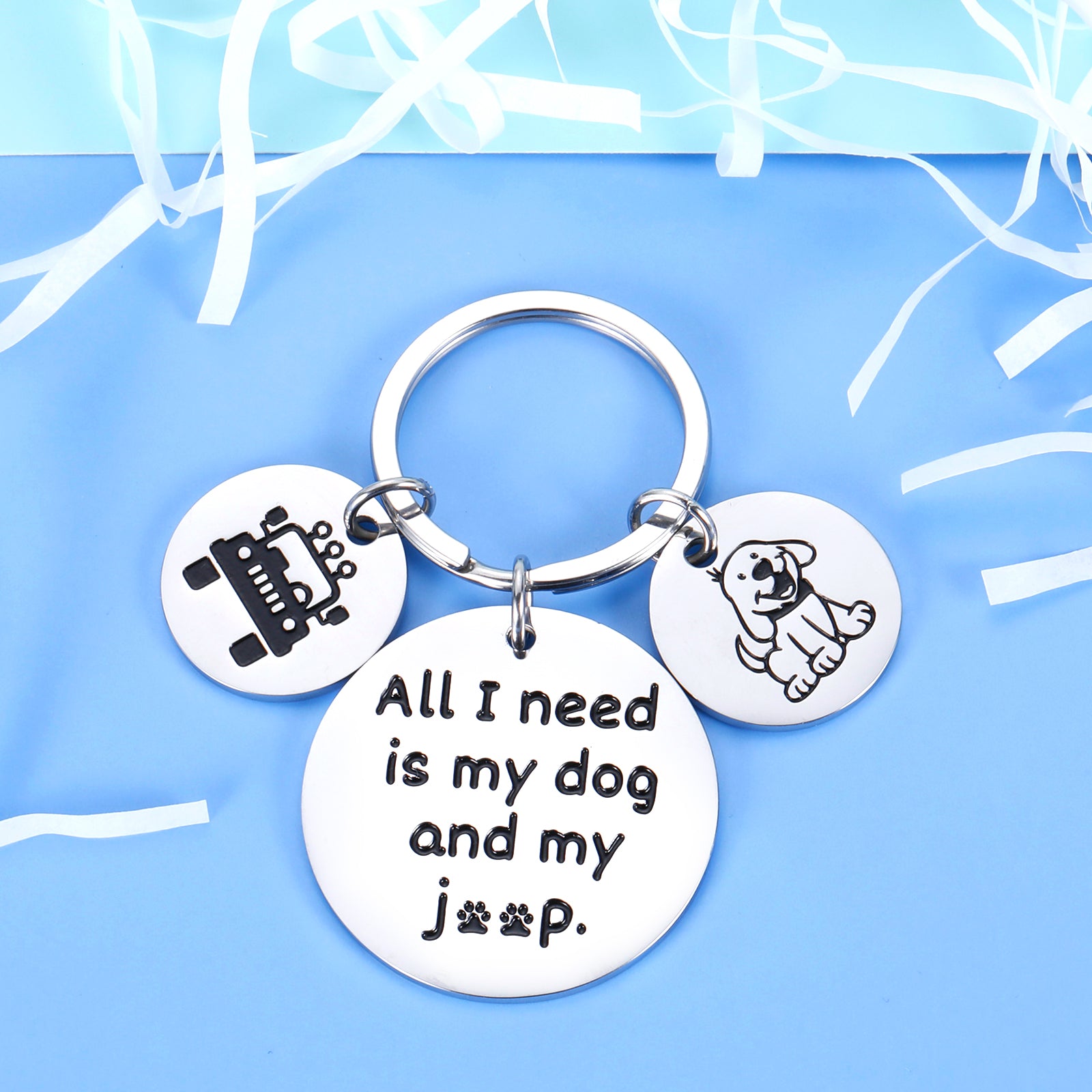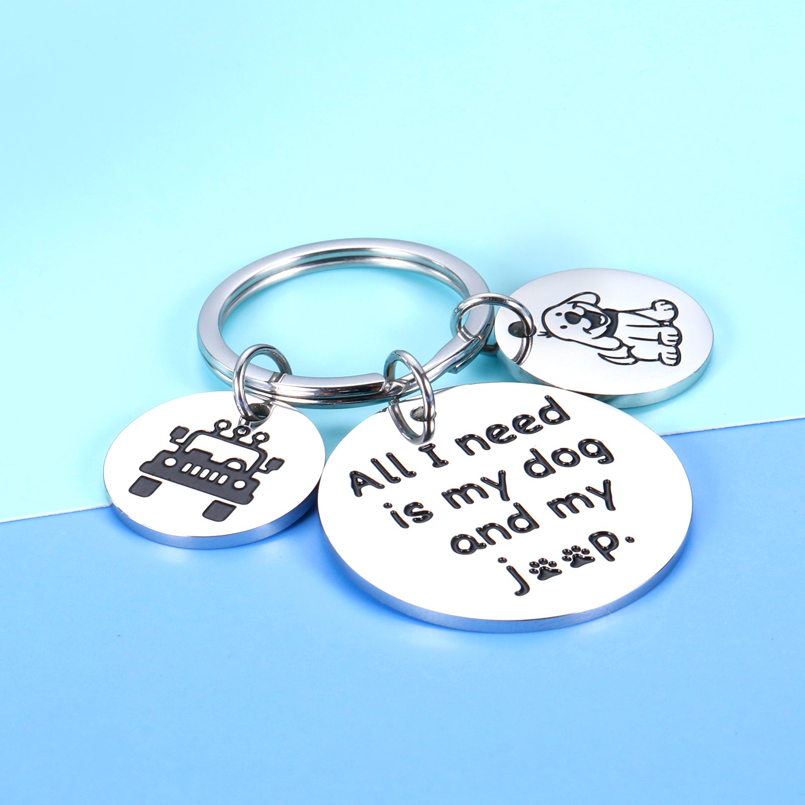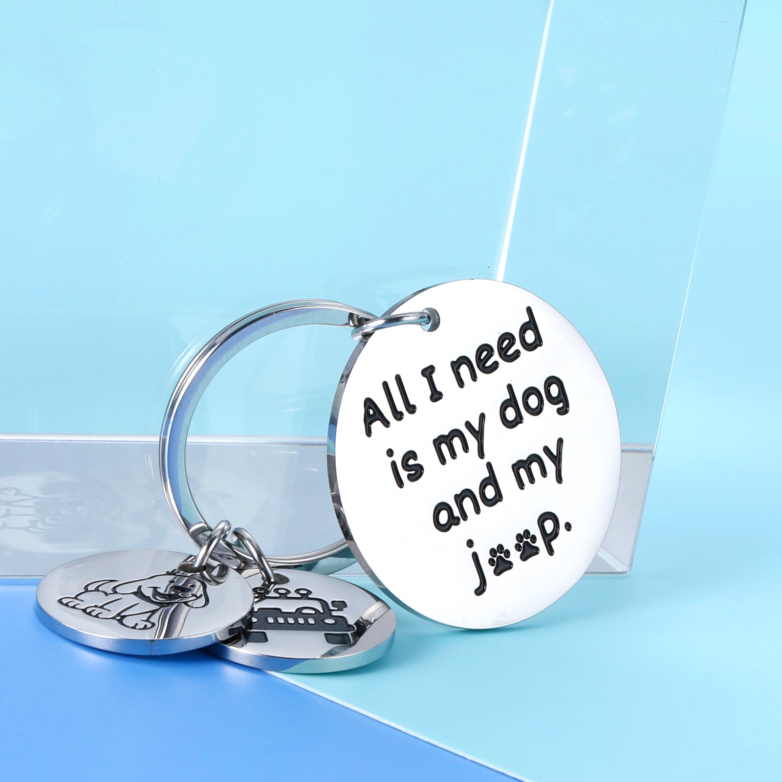 ❤Engraved with” All I need is my dog and my je*p” keychain.