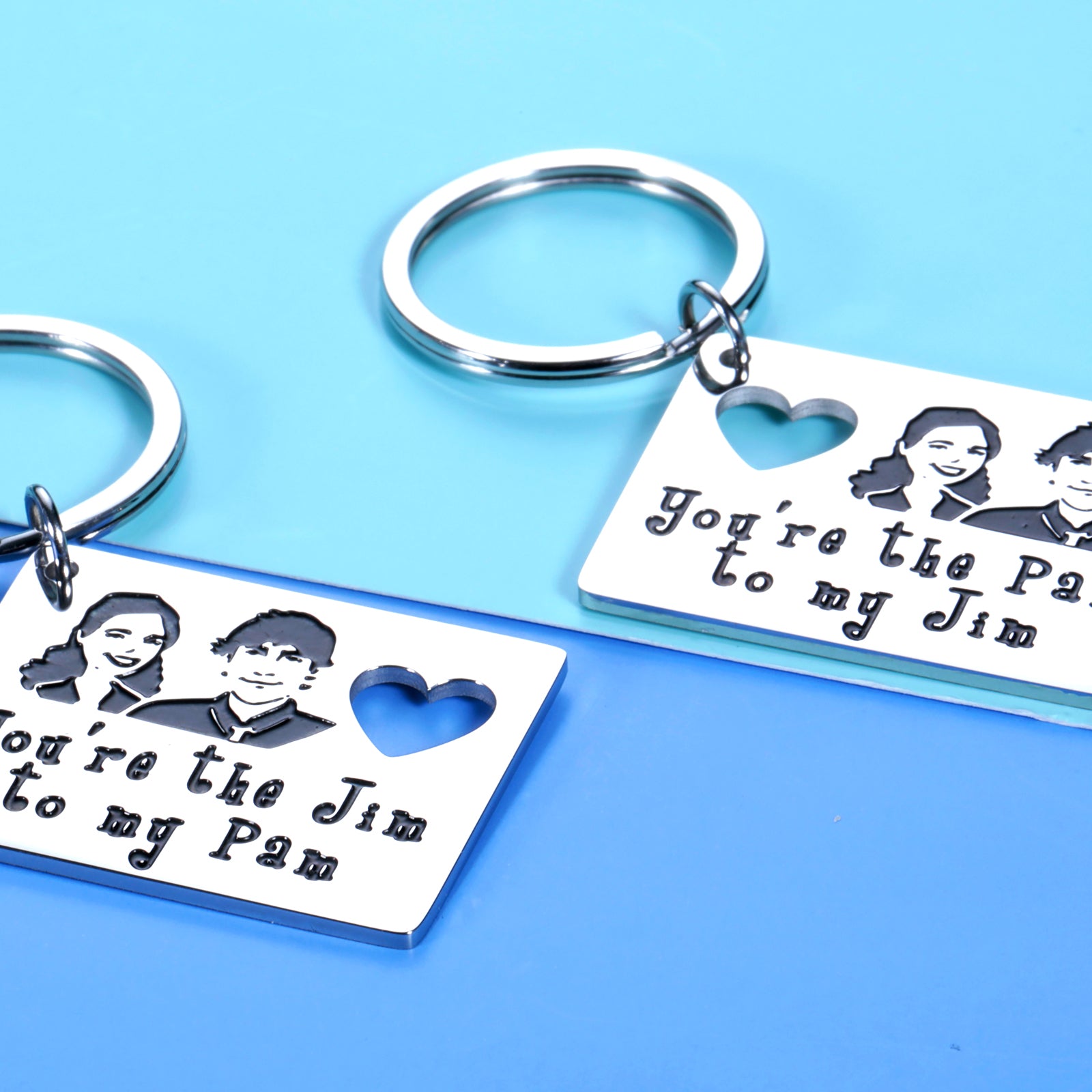 • ❤【MARRIAGE GIFTS FOR COUPLE】-- Couple keychain set of 2: One says you're the Jim to my Pam and the other says you're the Pam to my Jim. No couple is quite as cute as you and your SO, other than Jim Halpert and Pam Beesly from The Office. A significant gift for your Mr.Right, fiancee, fiance, special ones, wifey, hubby, lover.