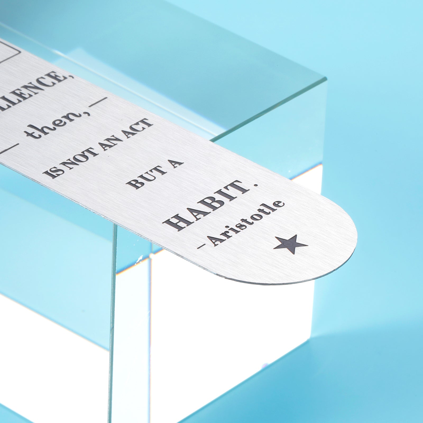 â€Engraved bookmark--âWe are what we repeatedly do. excellence, then, is not an act but a habit.â-Aristotle