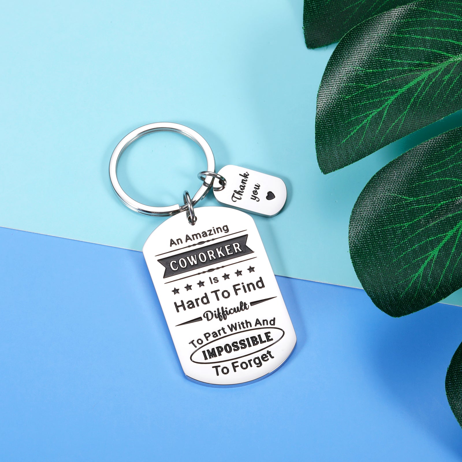 â€Engraved keychain--âAn Amazing Coworker Is Hard To Find Difficult To Part With And Impossible To Forget-Thank youâ .