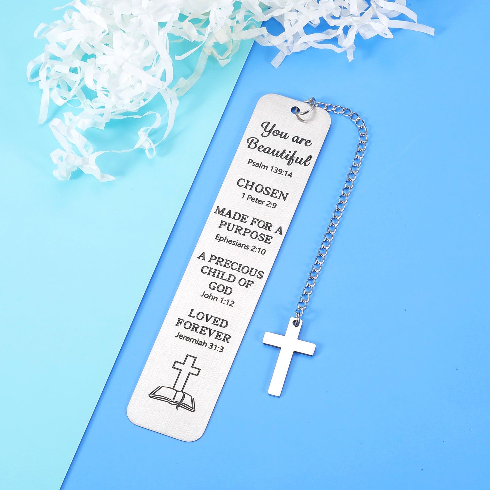 ✟This religious gift bookmark engraved with ”you are beautiful, psalm 139:14, chosen, 1 peter 2:9, made for a purpose, ephesians 2:10, a precious child of god, john 1:12, loved forever, jeremiah 31:3” Religious gift bookmark for women, men, best friend, BFF, daughter, son, godson, goddaughter, godparent, sisters, brothers, book lover.