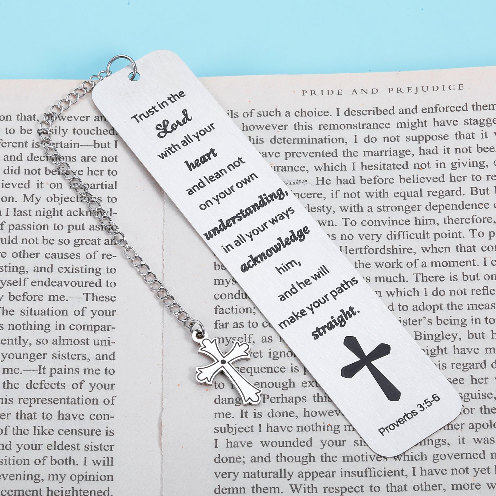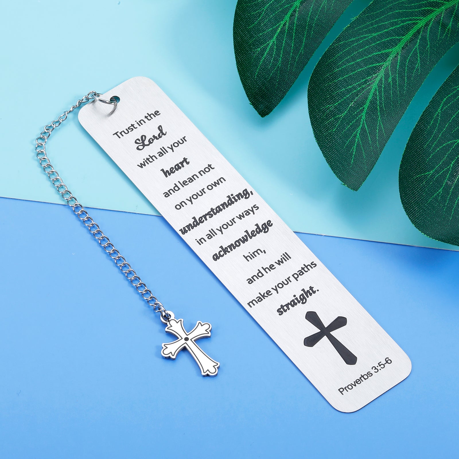 - ✟【Bible Verse Bookmark for Book Lover】--Engraved with bible verses “trust in the lord with all your heart, and lean not on your own understanding, in all your ways acknowledge him, and he will make your paths straight, proverbs 3:5-6.” Perfect gift for female male kids teen child family members church members besties bookish girl or anyone who loves reading, as Christmas, new year, Easter, birthday, graduation, thanksgiving, valentines, stocking stuffers, reading day, appreciation gift.