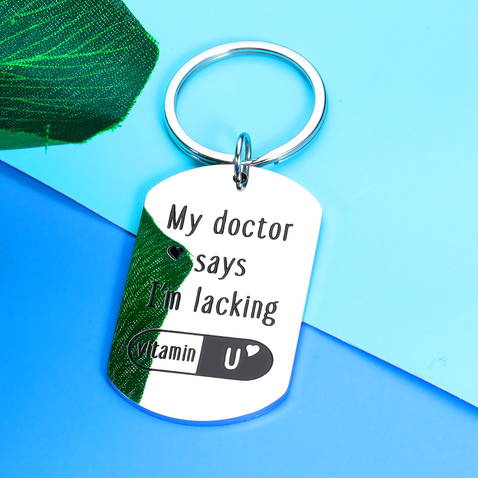 - ❤【Boyfriend Girlfriend Gifts for Valentine’s Day】--This cute keychain engraved with “My doctor says I am lacking vitamin U”. Give it to someone you love, it's a very humorous way to say that you need him/her and you can't lose him/her. This keychain will always be there for him/her to remind him/her how much you love him/her. Valentine’s day gift for women men her him, funny boyfriend girlfriend gift, husband wife gifts. This gift will bring a big smile when they receive this gift.